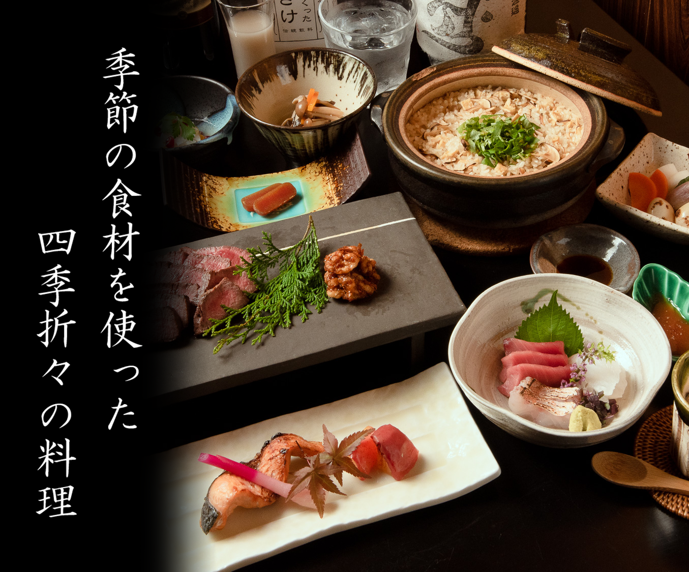 固定概念に囚われず季節の食材を楽しんで頂き、新しい発見をしてもらいたいという想いから、メニューのご用意がございません。